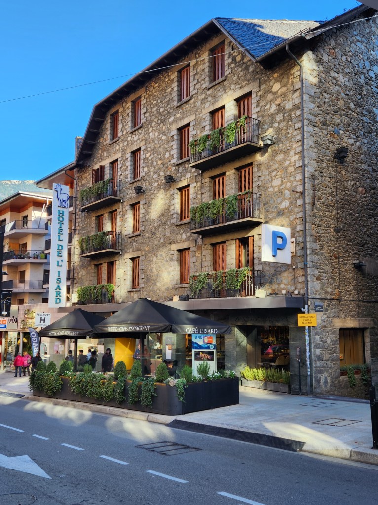 The beginning of November was too early for skiing, but being shoulder season, it was a great time to get a bargain rate on a hotel room. Hotel de L’Isard is located on Avenida Meritxell, one of the main drags in Andorra la Vella.